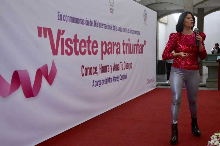 Tlaxcala, Tlax. 22 Octubre 2024. en el patio vitral del Congreso del Estado, se impartió la conferencia “vístete para triunfar “, impartida por Kharely Canigiani, con motivo al Día Internacional de lucha contra el cáncer de mama. Dicho evento fue organizado por la Fundación EsmeRoss A.C. y la diputada local Lorena Ruíz.