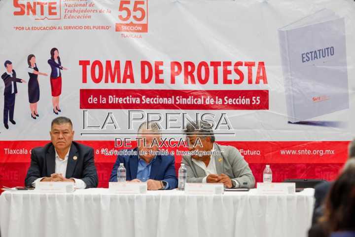 Tlaxcala, Tlax. 28 de octubre de 2024. Esta mañana en las instalaciones de la sección 55 del sindicato nacional de trabajadores de la educación, la maestra Tere Meneses tomó protesta al cargo como secretaria general de dicho sindicato, ante la presencia de autoridades del CEN se comprometió al trabajo coordinado con todos los agremiados a su sindicato.