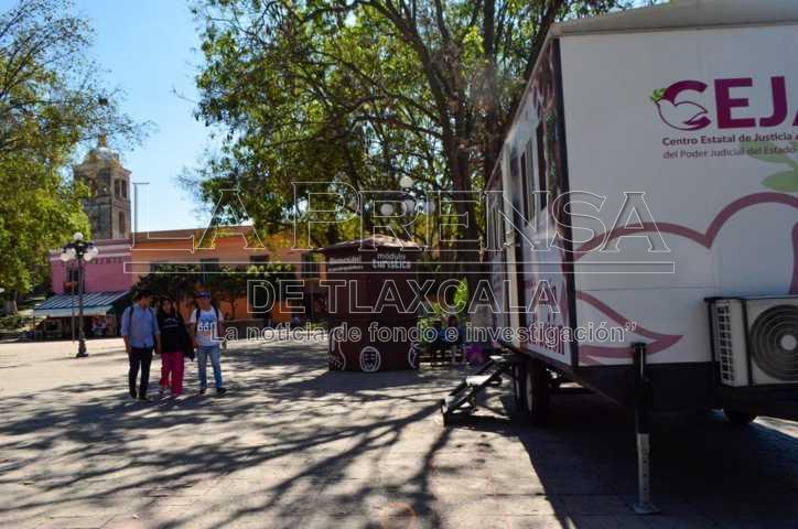 Tlaxcala, Tlax, 12 de noviembre de 2024. Por parte del Poder Judicial del Estado de Tlaxcala, se instaló la Unidad Móvil del Centro Estatal de Justicia Alternativa (CEJA) en la plaza Xicohténcatl, a fin de acercar la atención a la ciudadanía para asesorar y resolver problemas en materia civil, familiar, mercantil o vecinal.