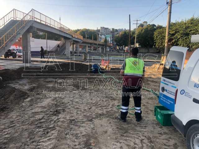Luego de que se reportara una fuga de gas en las inmediaciones del Mercado Emilio Sánchez Piedras de Tlaxcala, debido a los trabajos de reparación que se hacen en las calles aledañas a este establecimiento comercial, personal de Protección Civil del ayuntamiento de Tlaxcala de Xicohténcatl se dirigió al lugar del percance para de inmediato aplicar los protocolos de seguridad.