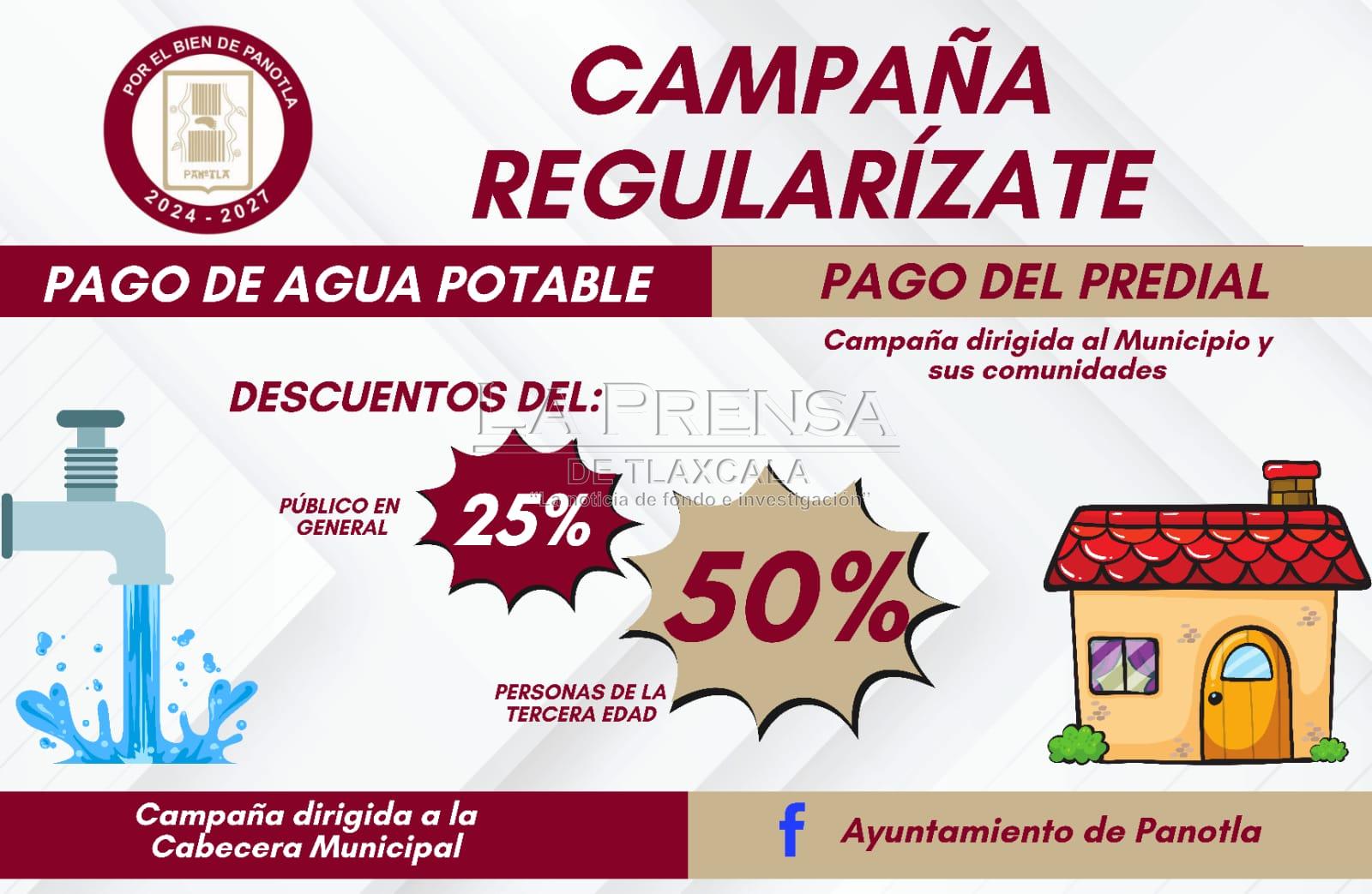 El Ayuntamiento de Panotla recuerda a las y los ciudadanos la “Campaña Regularízate” en el pago de agua potable y predial.