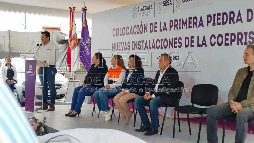 Chiautempan, Tlax, 20 de noviembre de 2024.Con una inversión de 16 millones de pesos la mandataria estatal, Lorena Cuéllar Cisneros, colocó la primera piedra de las nuevas instalaciones de la Comisión Estatal Para la Protección Contra Riesgos Sanitarios del Estado de Tlaxcala (COEPRIST), ubicada en el municipio de Chiautempan.