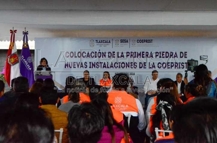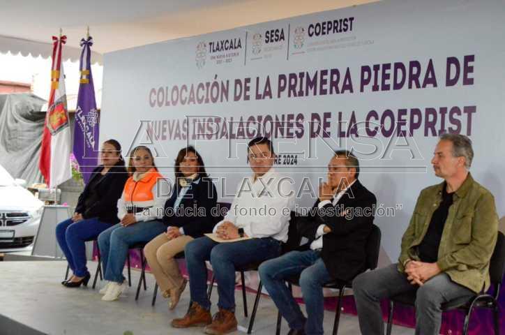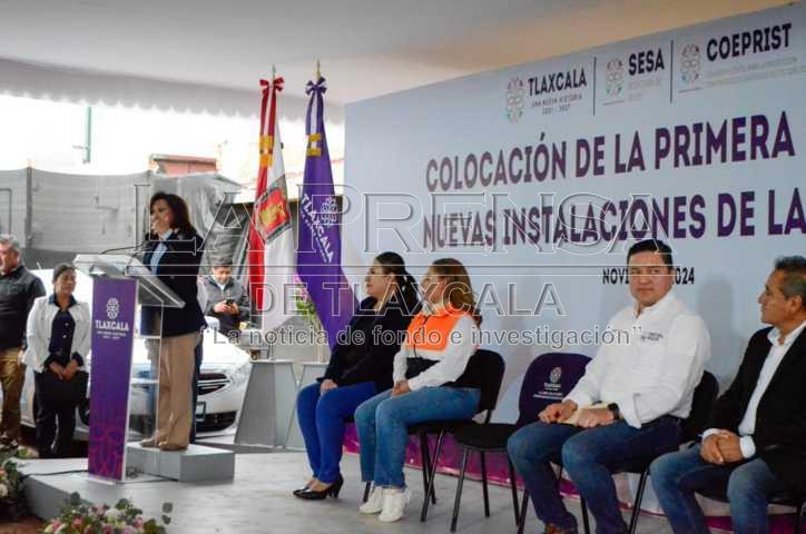 Chiautempan, Tlax, 20 de noviembre de 2024.Con una inversión de 16 millones de pesos la mandataria estatal, Lorena Cuéllar Cisneros, colocó la primera piedra de las nuevas instalaciones de la Comisión Estatal Para la Protección Contra Riesgos Sanitarios del Estado de Tlaxcala (COEPRIST), ubicada en el municipio de Chiautempan.