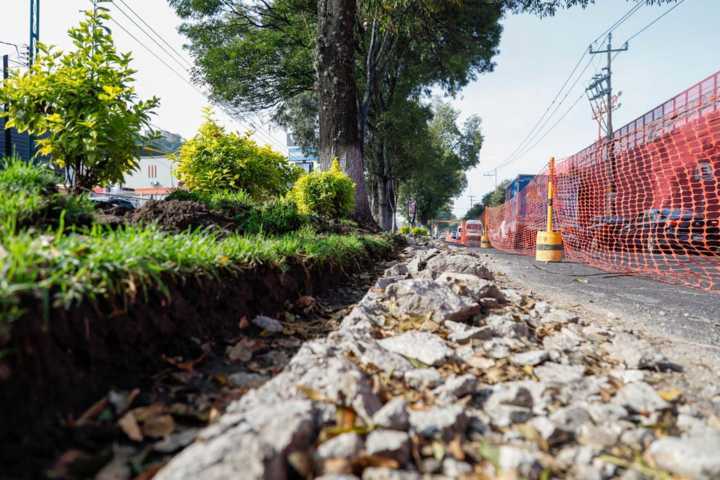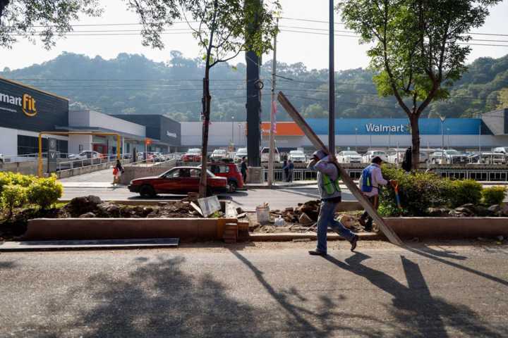 Tlaxcala, Tlax. 04 de noviembre de 2024. Sobre el bulevar Guillermo Valle en la capital de Tlaxcala, a la altura del estadio Tlahuicole, trabajadores continúan realizando el cambio de guarniciones y construcción de banquetas sobre el camellón, por lo que el tráfico se puede llegar a congestionar debido a las maniobras de los trabajadores.