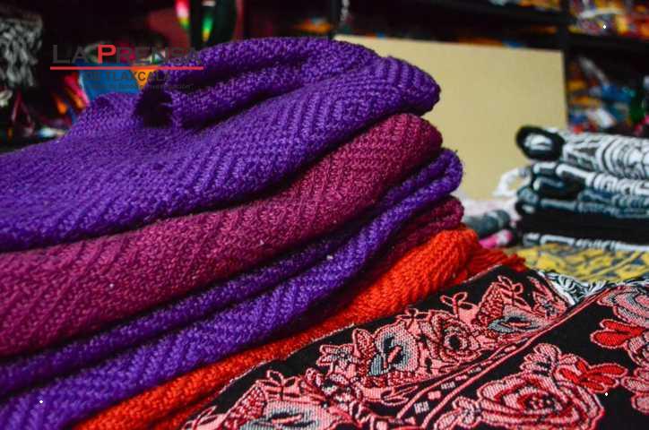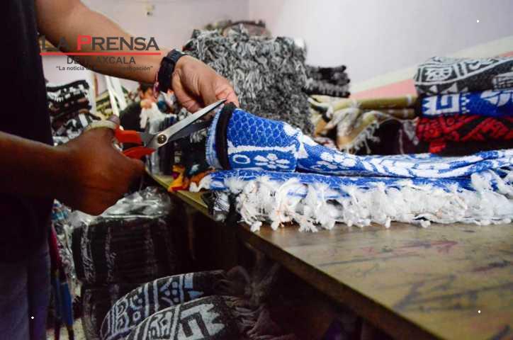 Contla, Tlax, 21 de noviembre de 2024. Sarapes, tenis, cobijas, cobertores, gabanas, bolsas, zapatos y otros productos se pueden encontrar en el municipio de Contla de Juan Cuamatzi, ya que éste se reconoce por sus textiles.
