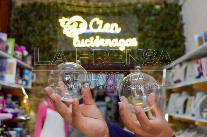 Tlaxcala, Tlax, 17 de noviembre de 2024. Sobre la Avenida Independencia, enfrente del parque Xicohténcatl se encuentra un negocio boutique “Cien Luciérnagas”, el cual por temporada navideña cada año hacen una actividad interactiva que consta en que las personas acudan al local para decorar su esfera y llevársela a casa.