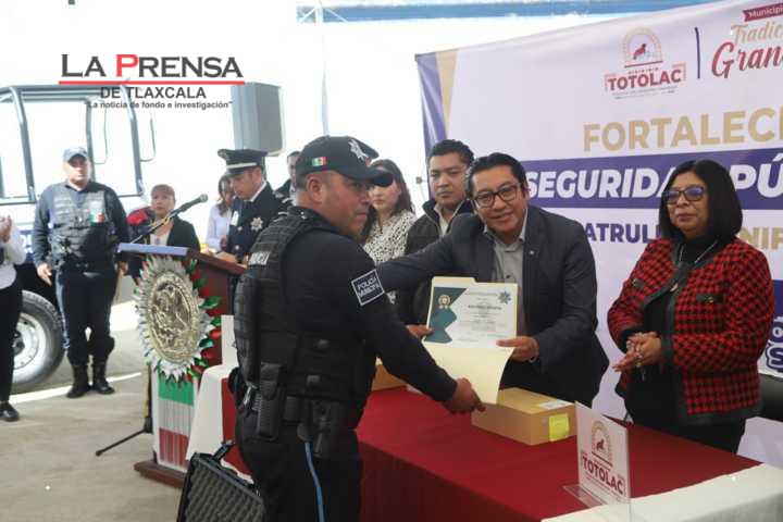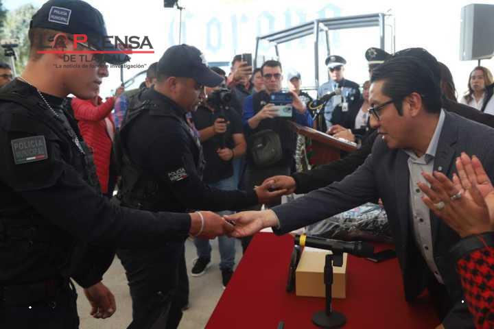 Durante esta mañana el alcalde benjamina tonal realizó la entrega de patrullas uniformes y armamento a elementos de seguridad pública municipal de Totolac, esto con la finalidad de fortalecer la seguridad pública en la demarcación. Además, se entregaron arcos detectores de vehículos con reporte de robo.