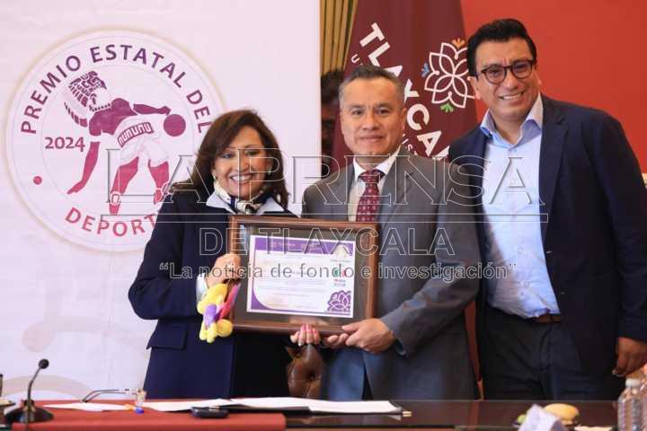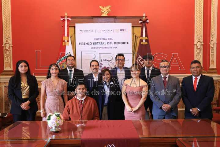 La gobernadora Lorena Cuéllar Cisneros entregó el Premio Estatal de Deporte 2024 a Natalia Pineda Soto, medallista en la disciplina de ciclismo; Kenya Cuahutle Pérez, medallista de atletismo; Marco Abdul López Pérez, medallista en paraatletismo; Ana Stephany Martínez Romero, entrenadora de luchas asociadas y Emmanuel Luna Martínez, en la modalidad de fomento, protección y/o impulso de la práctica de los deportes.