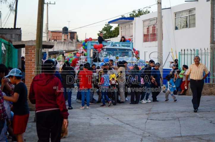 San Diego Metepec, Tlax, 15 de noviembre de 2024. Durante esta tarde -noche, por las calles principales de San Diego Metepec, perteneciente al municipio de Tlaxcala se llevó a cabo un desfile donde participaron 22 contingentes entre ellos comercios, prestadores de servicios, algodoneros, taquerias y funerarias, con motivo de la fiesta del pueblo de la comunidad.