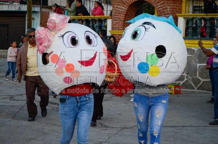San Diego Metepec, Tlax, 15 de noviembre de 2024. Durante esta tarde -noche, por las calles principales de San Diego Metepec, perteneciente al municipio de Tlaxcala se llevó a cabo un desfile donde participaron 22 contingentes entre ellos comercios, prestadores de servicios, algodoneros, taquerias y funerarias, con motivo de la fiesta del pueblo de la comunidad.