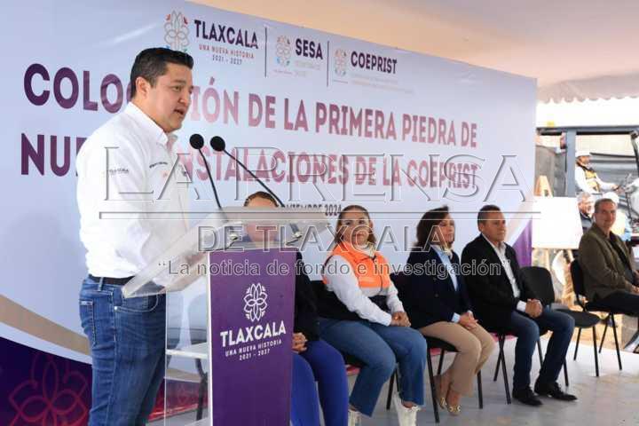 La gobernadora Lorena Cuéllar Cisneros colocó la primera piedra de las oficinas de la Comisión Estatal Para la Protección Contra Riesgos Sanitarios del estado de Tlaxcala (Coeprist) que estarán ubicadas en Santa Ana Chiautempan con la finalidad de brindar mayor bienestar a la población y los trabajadores.