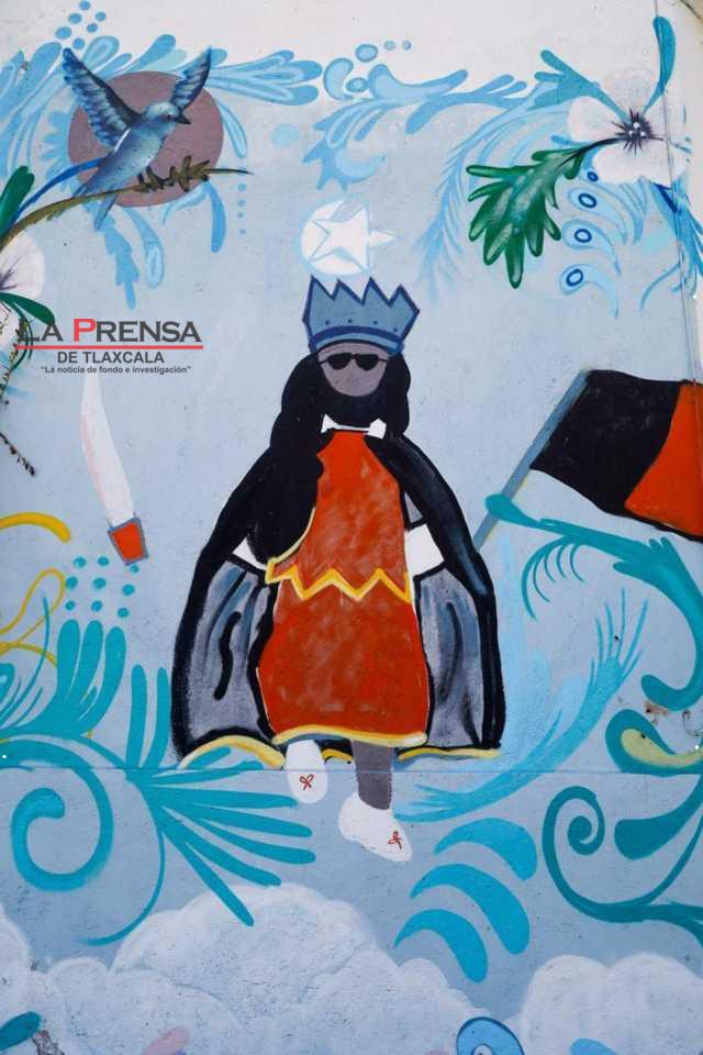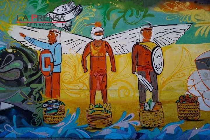 Este arte fue plasmado por los autores César Luna Ocotitla, Julieta Santacruz y Jesús Roja Cuauhtle, tras participar en el concurso denominado “Inmortalizando nuestra identidad”.
