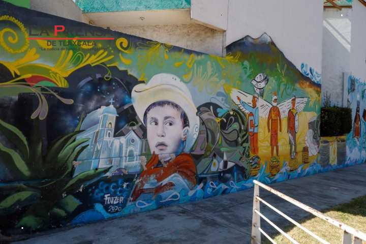 Totolac, Tlax. 30 de noviembre de 2024. Elaborado en el año 2020 en el centro de desarrollo comunitario 4 señoríos de la comunidad de Zaragoza, municipio de Totolac, las obras “Esfuerzo, trabajo y fe”, “tradiciones que alimentan el alma” y “pulso de mis raíces” , son tres bocetos que integran un solo mural que inmortaliza la identidad del municipio.