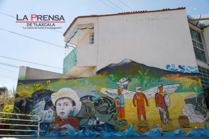 Totolac, Tlax. 30 de noviembre de 2024. Elaborado en el año 2020 en el centro de desarrollo comunitario 4 señoríos de la comunidad de Zaragoza, municipio de Totolac, las obras “Esfuerzo, trabajo y fe”, “tradiciones que alimentan el alma” y “pulso de mis raíces” , son tres bocetos que integran un solo mural que inmortaliza la identidad del municipio.