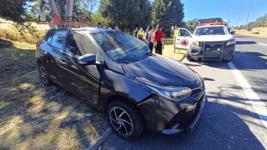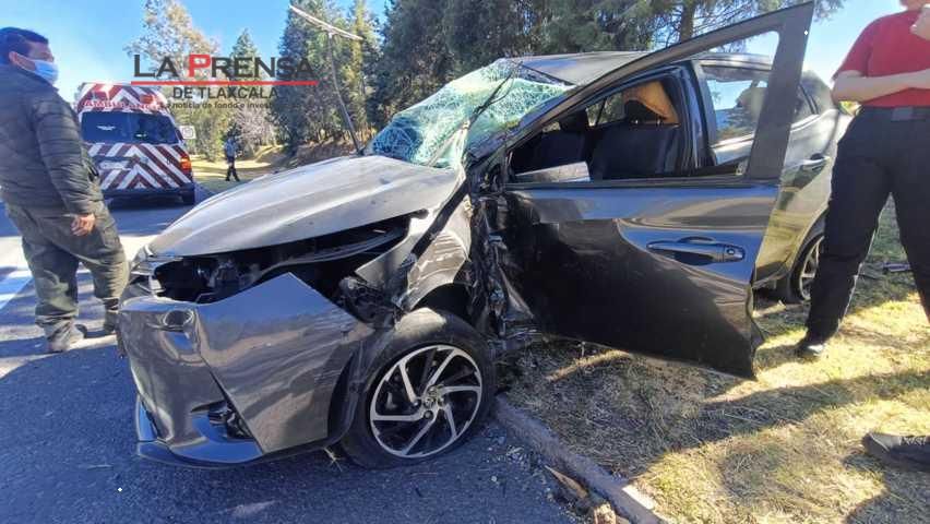 Mujer se salva de m0rir tras chocar su vehículo contra un árbol en Tepoxtla Yauhquemehcan