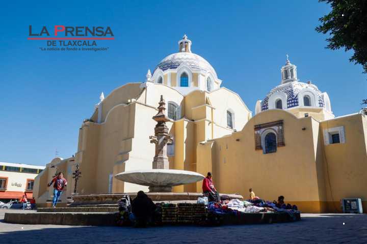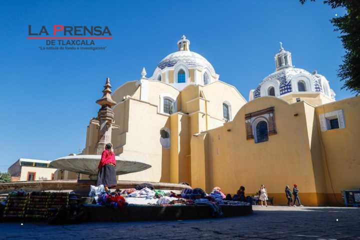 Tlaxcala, Tlax. 23 de noviembre de 2024. Un grupo de mujeres provenientes del estado de Oaxaca ofrecen productos de su región en la explanada trasera de la parroquia de San José, entre los que se encuentran ropas bordadas a mano, jicaras y diferentes artesanías de ese estado.