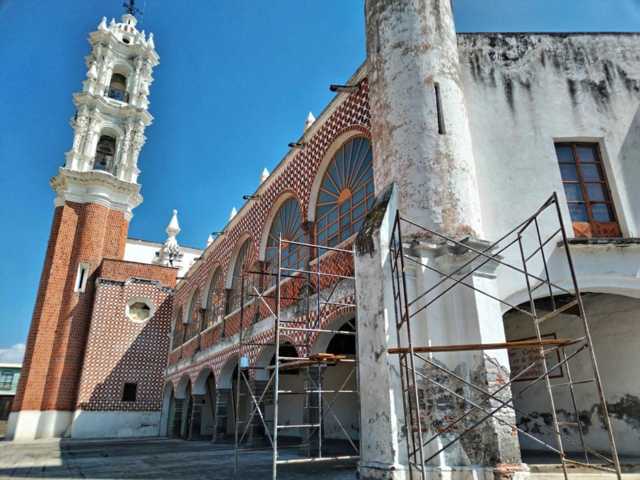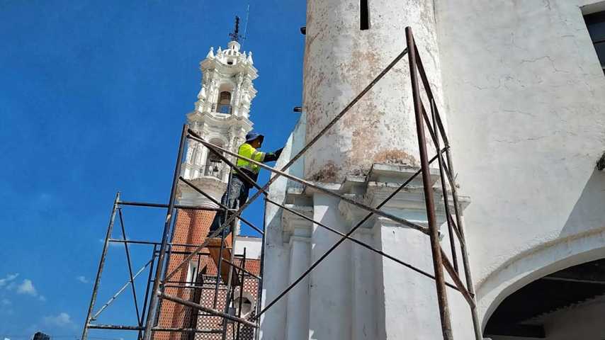 Ocotlán, Tlax, 5 de noviembre de 2024. La Basílica de Ocotlán en conjunto con Instituto Nacional de Antropología e Historia (INAH), realizan remodelaciones de la Casa de Retiros de Ocotlán, desde hace aproximadamente un mes. Dichos trabajos que se esperan concluyan a finales de noviembre, consisten en cambio de señale, pinta de paredes, así como colocación de piso.