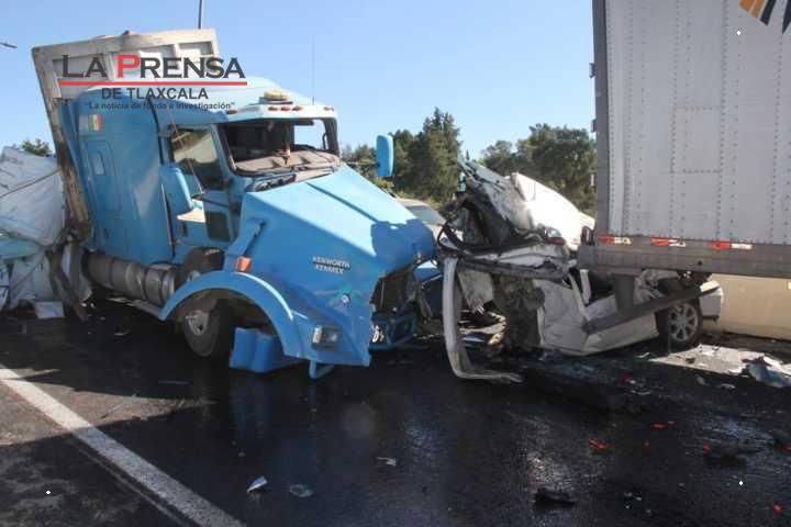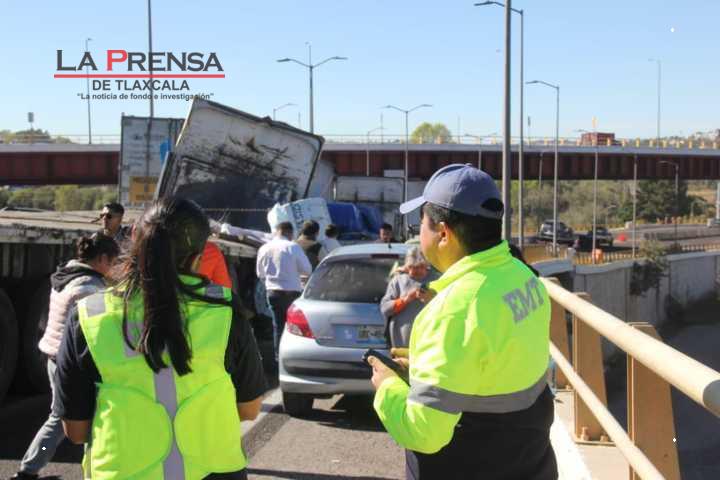 Apetatitlán, Tlaxcala. 25 noviembre 2024. Esta mañana se registró un choque múltiple en la carretera Tlaxcala-Apizaco, con sentido a la capital tlaxcalteca, donde estuvieron involucrados un trailer el cual embistió varios vehículos. Como resultado de este accidente dos personas resultaron con lesiones de consideración por lo que fueron trasladados a un hospital.