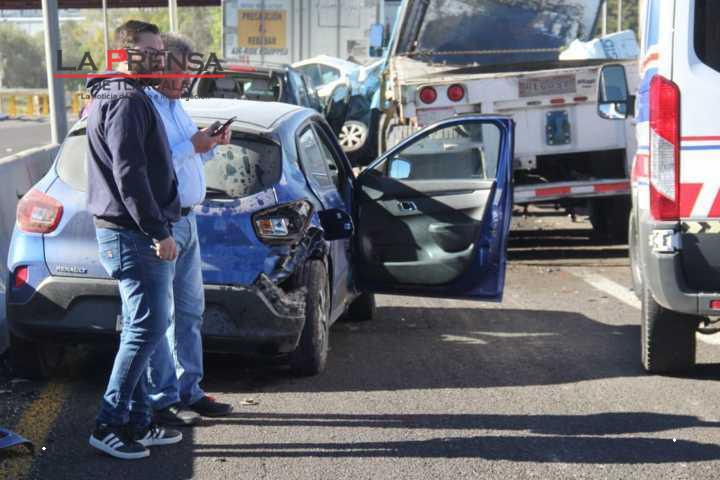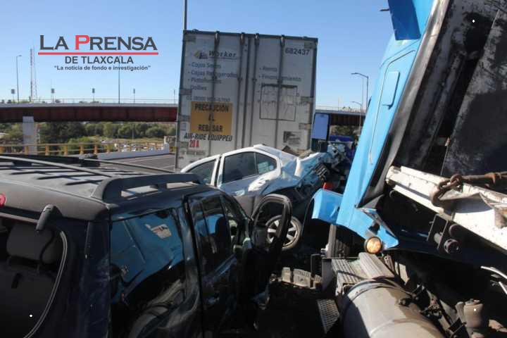 Apetatitlán, Tlaxcala. 25 noviembre 2024. Esta mañana se registró un choque múltiple en la carretera Tlaxcala-Apizaco, con sentido a la capital tlaxcalteca, donde estuvieron involucrados un trailer el cual embistió varios vehículos. Como resultado de este accidente dos personas resultaron con lesiones de consideración por lo que fueron trasladados a un hospital.