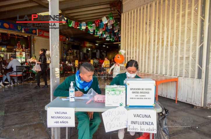 Tlaxcala, Tlax, 15 de diciembre de 2024. Ante los frentes fríos y cambios de temperatura que hay en Tlaxcala, el sector salud del Instituto Mexicano del Seguro Social (IMSS) ha colocado dos puestos de vacunación en Tlaxcala, uno frente al mercado “Emilio Sánchez Piedras” y otro a las afueras de Bodega Aurrera, con el fin de llegar a más personas para que puedan evitar casos de gripe y sus complicaciones.