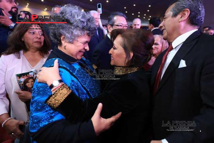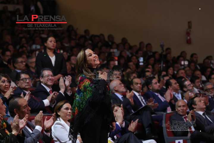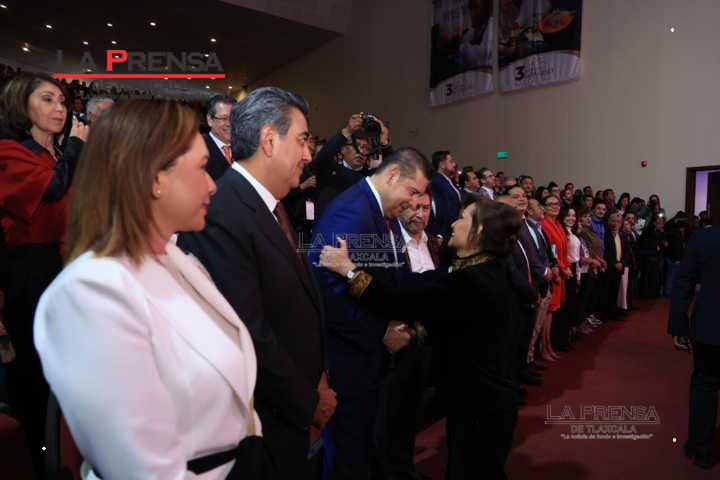 En el evento realizado en las instalaciones del Centro Cultural Universitario (CCU) de la Universidad Autónoma de Tlaxcala (UATx), la titular del Ejecutivo local fue arropada por exgobernadores, funcionarios, exfuncionarios, diputados federales y locales, alcaldes, así como líderes empresariales, sociales y sindicales, además de rectores, entre otros representantes de la academia.