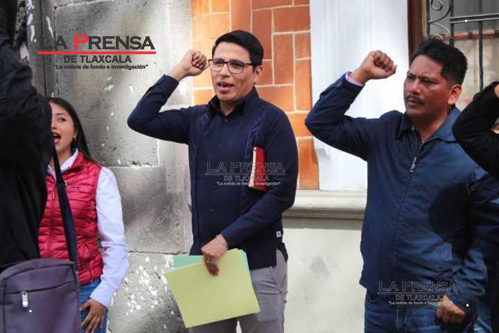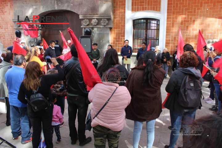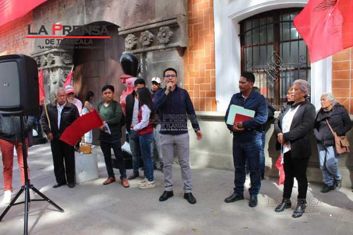 Tlaxcala,Tlax. 19 diciembre 2024. Líderes de Antorcha campesina entregan este día un pliego petitorio a autoridades estatales en demanda de la realización de obras en varios municipios del estado; además de solicitar servicios en varias colonias donde están viviendo sus agremiados. Por lo anterior, un grupo de agremiados al movimiento encabezados por Isaias Chanona, se manifiestan a las afueras de Palacio de gobierno.