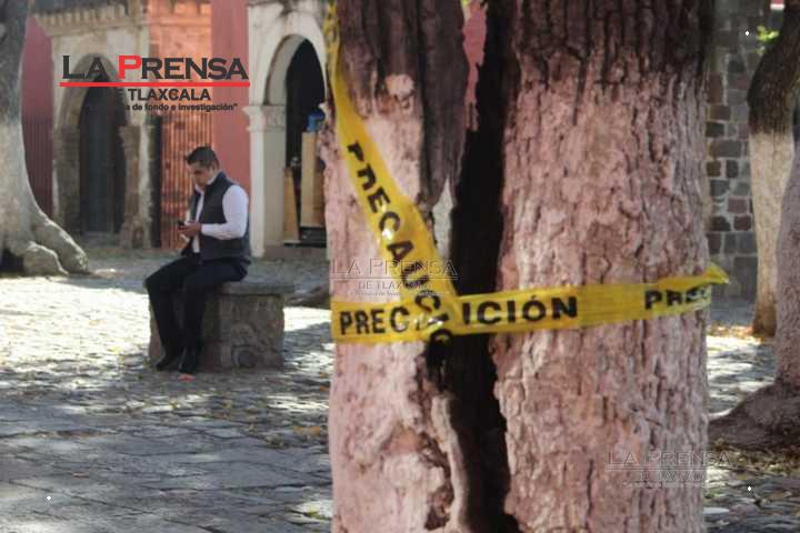Tlaxcala, tlax 13 de Diciembre 2024.- Un árbol ubicado frente al Ex Convento de San Francisco, declarado Patrimonio de la Humanidad por la UNESCO, ha sufrido una fractura evidente que ha generado preocupación entre los habitantes de la ciudad y los amantes del patrimonio cultural.