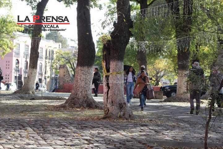 Tlaxcala, tlax 13 de Diciembre 2024.- Un árbol ubicado frente al Ex Convento de San Francisco, declarado Patrimonio de la Humanidad por la UNESCO, ha sufrido una fractura evidente que ha generado preocupación entre los habitantes de la ciudad y los amantes del patrimonio cultural.