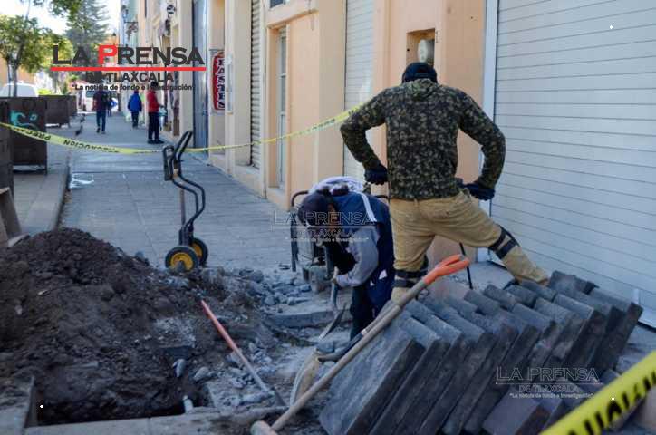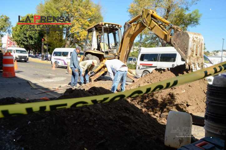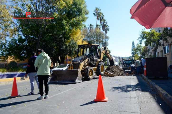 Tlaxcala, Tlax, 09 de diciembre de 2024. Trabajadores de la Comisión de Agua Potable del Municipio de Tlaxcala (CAPAM) empezaron con trabajos de colocar registro y descarga de drenaje en la calle Julian Carrillo, por lo cuál la vialidad se ve afectada dejando menos de la mitad de calle para que los carros puedan pasar, asimismo dificulta el tránsito peatonal. Tome sus precauciones.