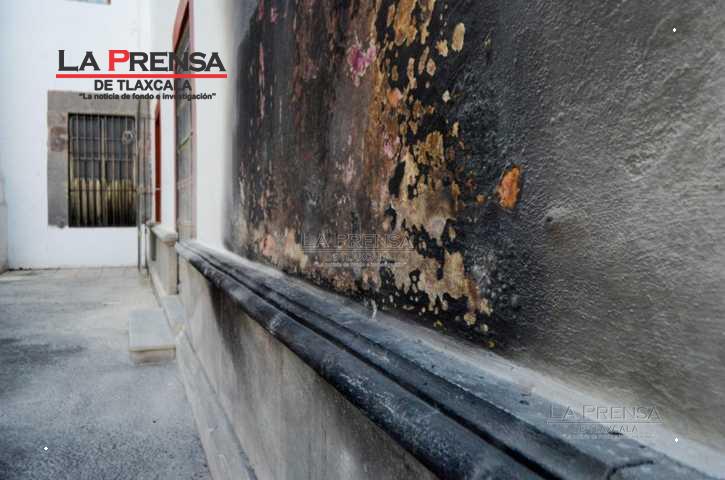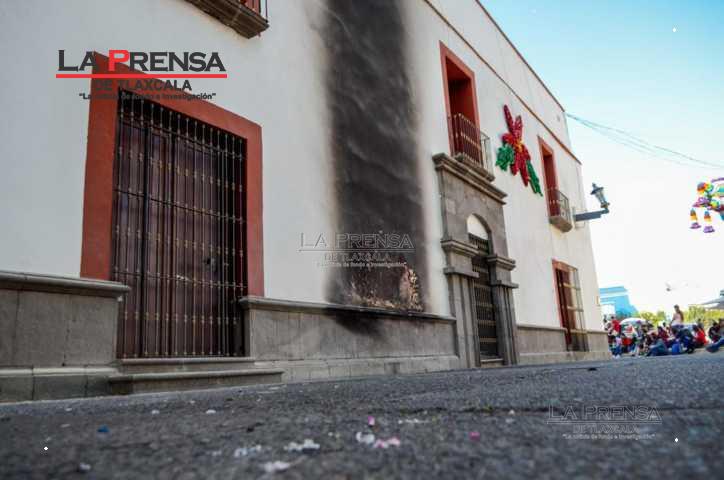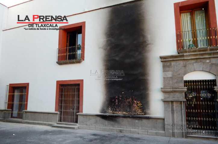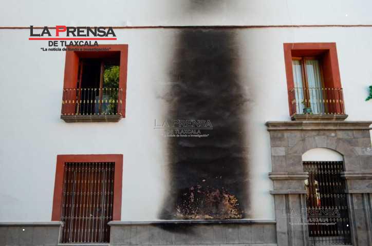 Tlaxcala, Tlax, 15 de diciembre de 2024. Luego de que ayer por la tarde noche se registrará un incendio de algunos adornos navideños en la capital tlaxcalteca, hoy se perciben los daños ocasionados en la fachada del edificio de la dirección de Gobernación.