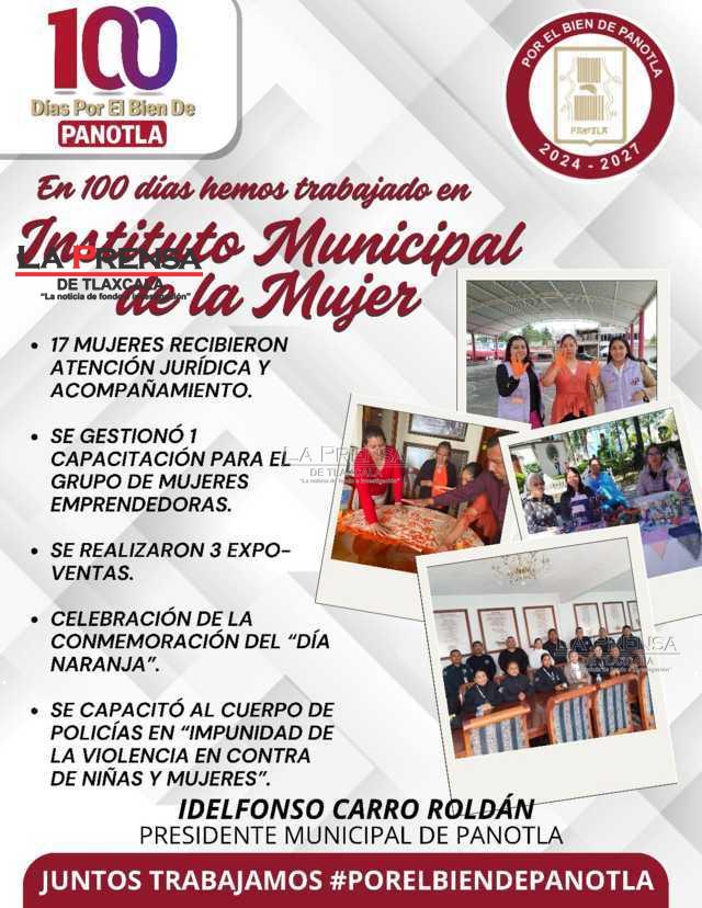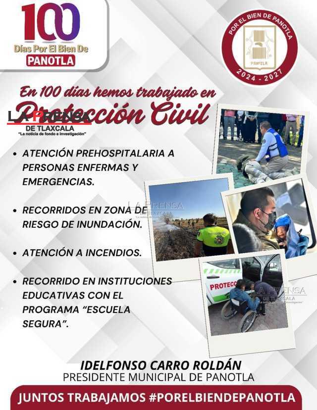 El Ayuntamiento de Panotla, encabezado por el Presidente Municipal Idelfonso Carro Roldán, también realizó un balance de los primeros 100 días destacando avances significativos en áreas clave que contribuyen al desarrollo y bienestar del municipio en áreas como Cultura y Turismo, Atención Ciudadana, Protección Civil, Instituto de la Mujer y Unidad Canina.