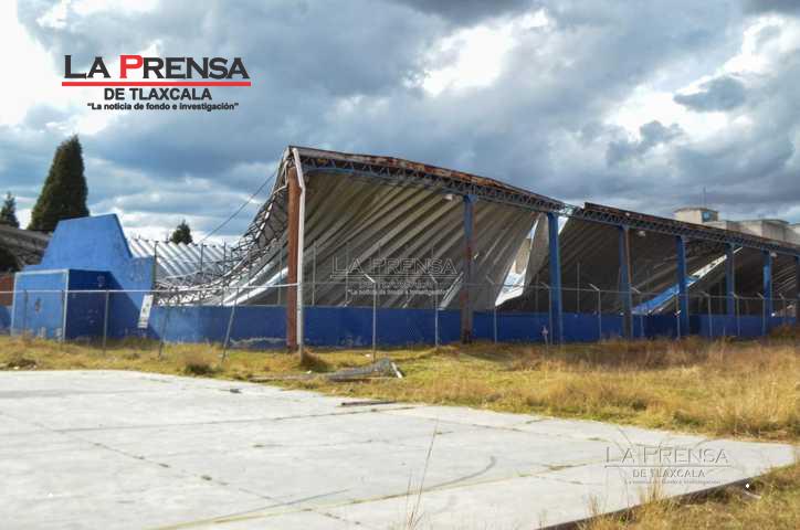 En descuido cancha de fútbol y auditorio en Tetla de la Solidaridad