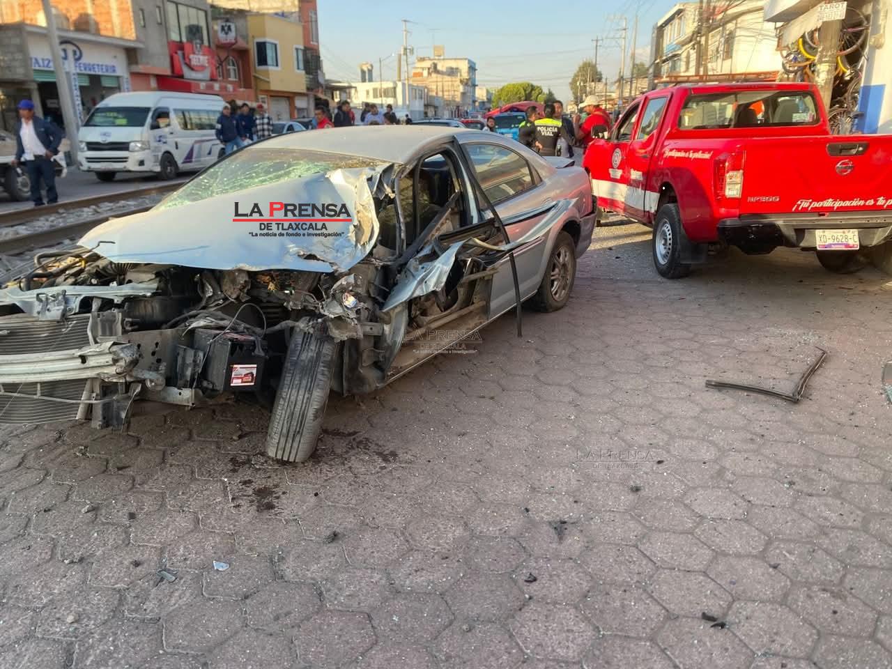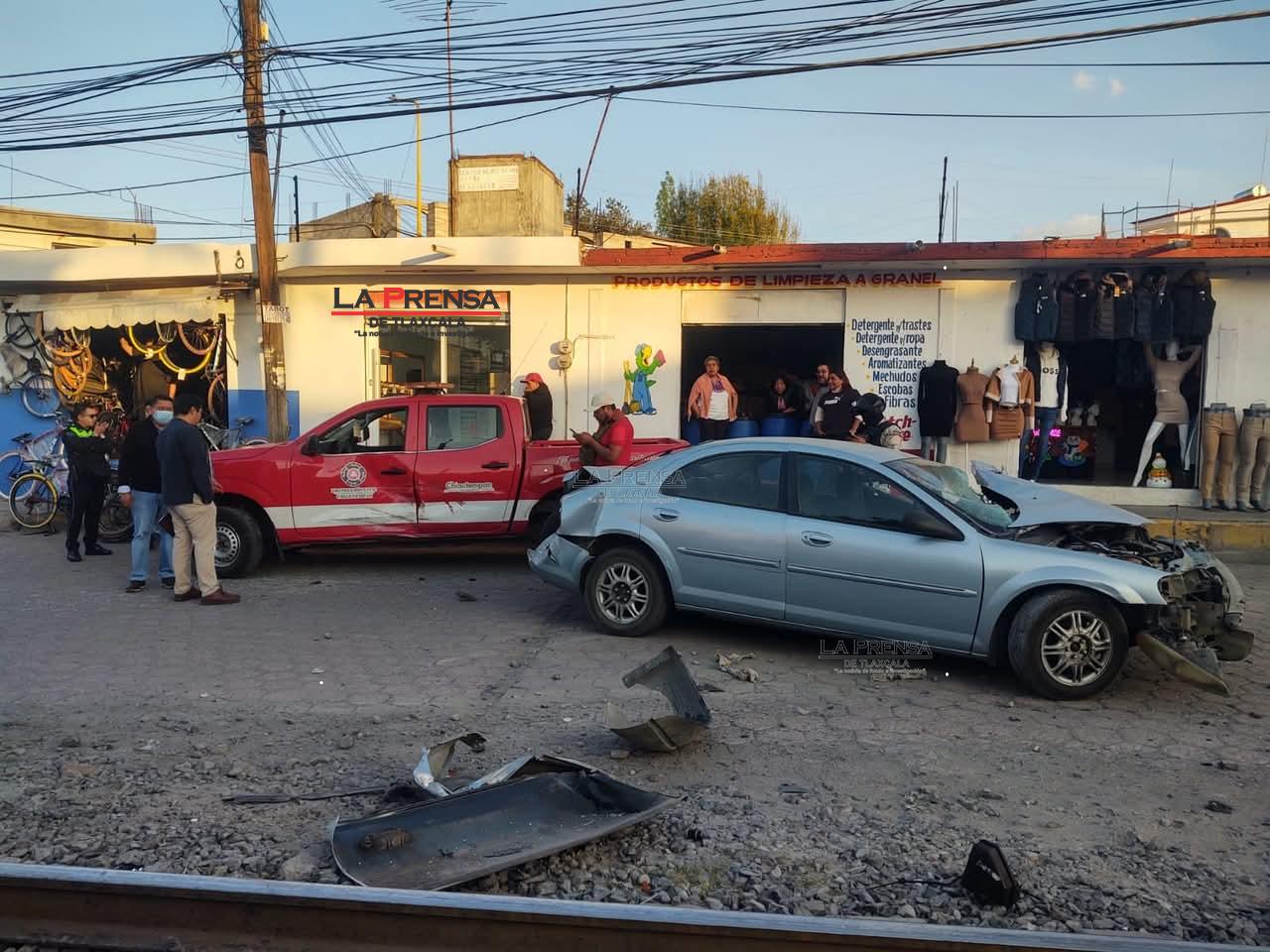 Un automóvil que se encontraba estacionado muy cerca de las vías del ferrocarril, fue embestido por la locomotora en el municipio de Chiautempan.