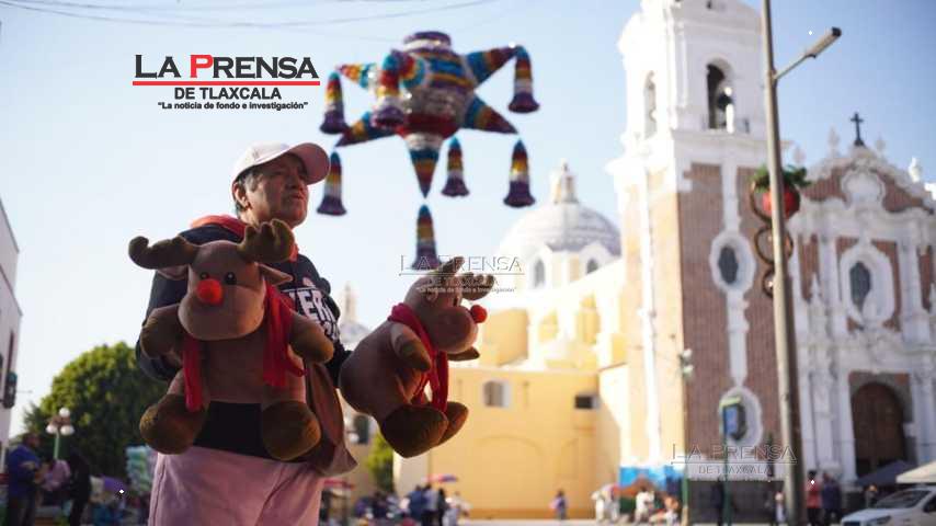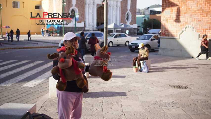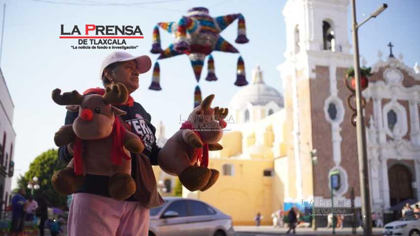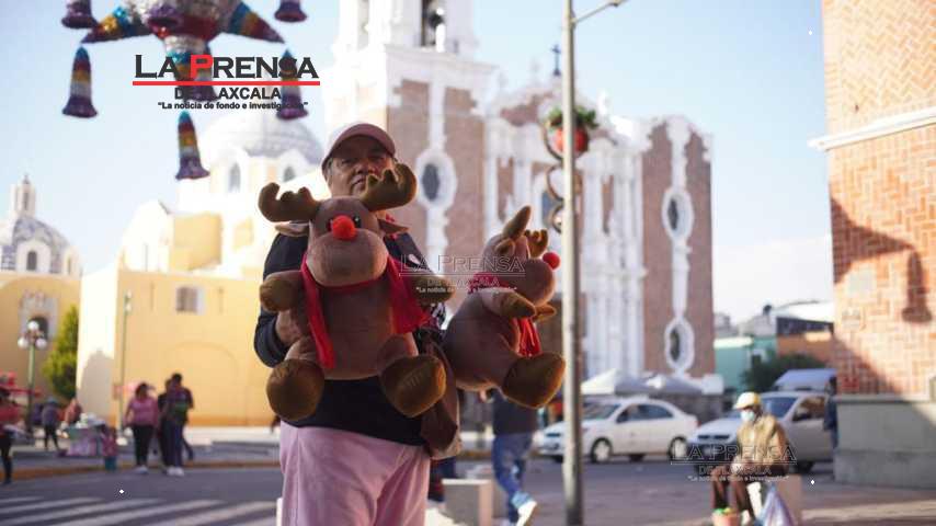 Tlaxcala, Tlax. 13 de Diciembre 2024.- En la periferia de la parroquia de San José, un lugar emblemático de la ciudad Tlaxcalteca, se encuentra doña Juanita Morales, una mujer dedicada que durante 8 años ha estado vendiendo sus pequeños renos de peluche y que se han convertido en una tradición navideña para su pequeño negocio familiar.