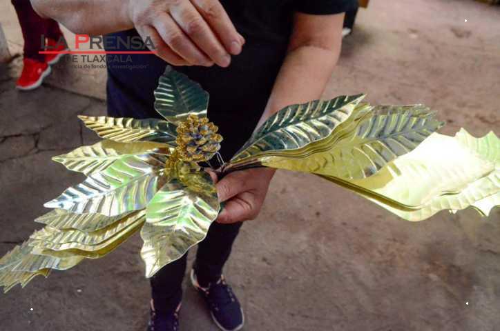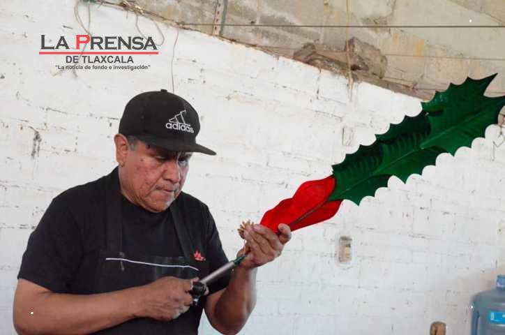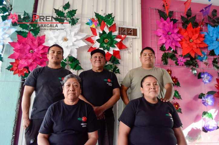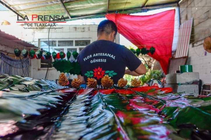 Esta artesanía de temporada es elaborada por manos tlaxcaltecas. La familia Zárate Rivas de la comunidad de San Miguel Xochitecatitla, perteneciente al municipio de Nativitas, lleva más de 20 años elaborando flores de Nochebuena hechas de papel las cuales miden un 1.20 metros de largo y su tiempo de vida es de un poco más de medio año.