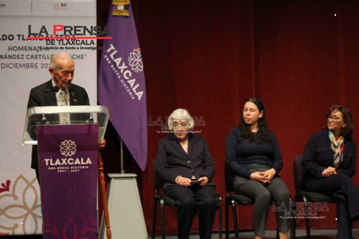 Tlaxcala, Tlax. 04 diciembre 2024. Este día, la Gobernadora del Estado, Lorena Cuellar Cisneros, encabezó el homenaje a José Hernández Castillo “Cheché” cronista emérito de Huamantla.