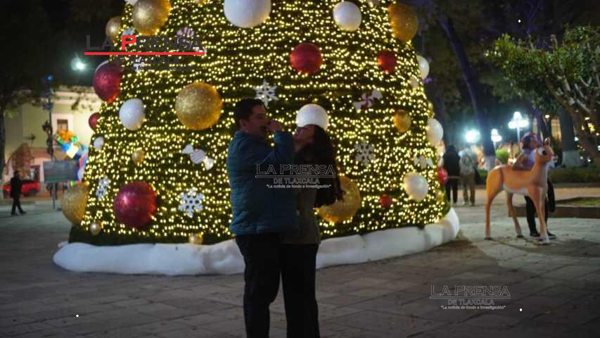 Tlaxcala, Tlax, 04 de Diciembre. Con la llegada de las fiestas decembrinas, diversas personas gustan de disfrutar de las tradicionales luminarias que adornan las calles y espacios públicos del centro de la capital tlaxcalteca.