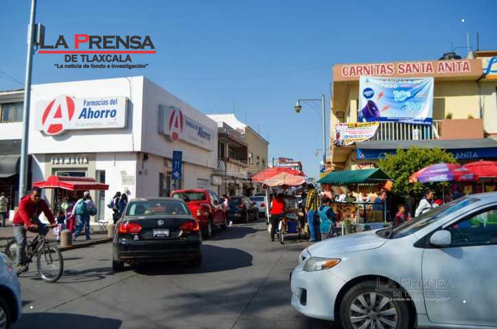 Chiautempan, Tlax, 30 de diciembre de 2024.Derivado de las compras para las vísperas de Año Nuevo, el tráfico en el primer cuadro de Chiautempan se puede apreciar una gran afluencia de vehículos, ya que las personas recurren a comprar para la cena con la que han de recibir el 2025.