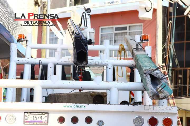 Un accidente ocurrió en la calle Libertad,del municipio de Chiautempan, cuando una caja de traíler chocó contra un poste de luz, causando daños en los cables y el poste. La Comisión Federal de Electricidad (CFE) acudió rápidamente para atender el incidente.