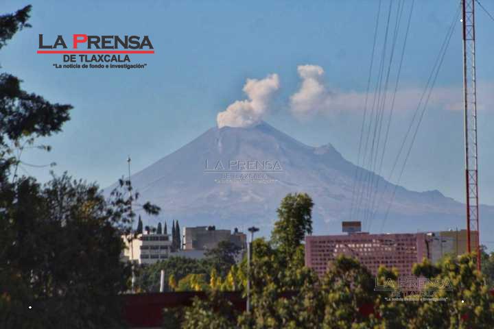 Tlaxcala,tlax, 06 de diciembre.- La ciudad de Tlaxcala se despertó este viernes con una vista impresionante hacia los volcanes Iztaccíhuatl y Popocatépetl.