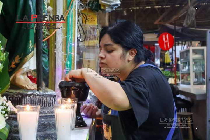 Tlaxcala, Tlax, 28 de enero de 2025. Cada 28 de cada mes se celebra a San Judas Tadeo, quien es considerado el patrono de las causas imposibles. Los creyentes católicos suelen visitar la imagen, realizar misas o rosarios como es el caso de algunos locatarios del mercado municipal “Emilio Sánchez Piedras”, de la capital tlaxcalteca; quienes desde hace nueve años han mantenido la devoción que inició como agradecimiento a la imagen por un milagro para los comerciantes, es así que esta actividad se ha convertido en un evento que reúne a varios personas del mercado, para pedir por sus ventas y salud de sus familiares.