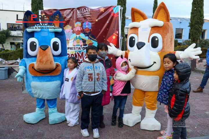 Tlaxcala, Tlax, 06 de enero de 2025. Con la tradicional partida de rosca, esta tarde en la plaza Juárez, la diputada local Madai Pérez Carrillo, inició la denominada “Fiesta de Reyes Magos” , donde familias se reunieron para festejar este día. Juegos, botargas, regalos y roscas formaron parte de esta actividad que busca fomentar las tradiciones de unión familiar.