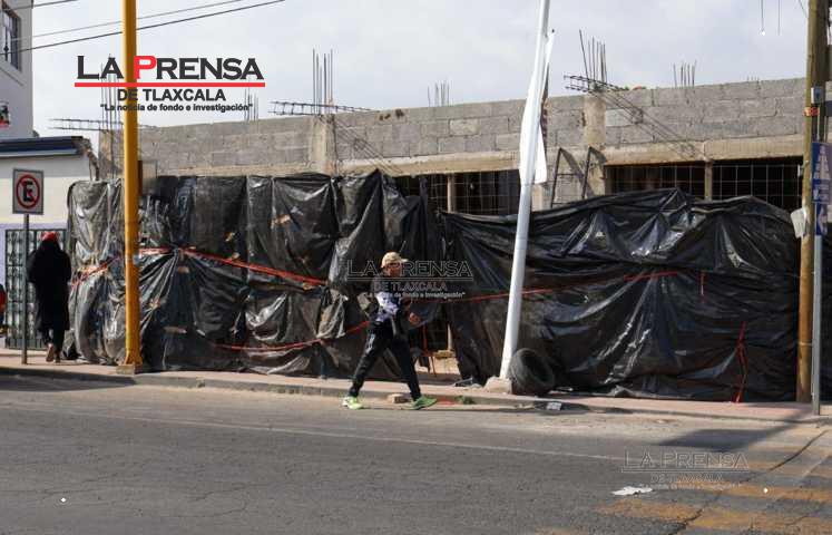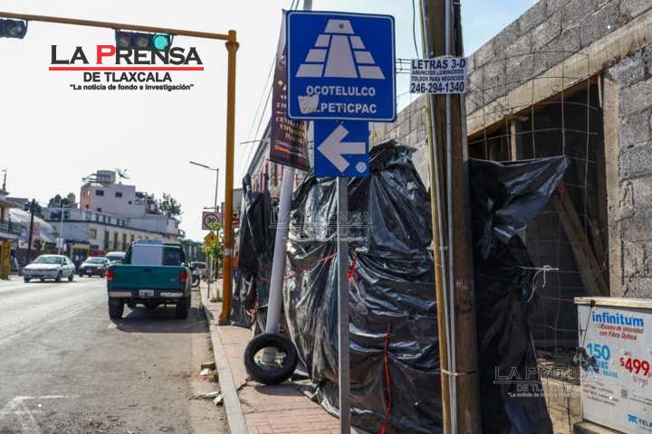 Tlaxcala, Tlax, 20 de enero de 2025. Lo que parece ser una construcción privada que se realiza sobre la calle Tlahuicole de la capital tlaxcalteca , abarca más de la mitad de banqueta, invadiendo prácticamente el espacio para que las personas puedan transitar libremente y de manera segura, por lo que algunos ciudadanos deben sortear a los vehículos cuando transitan por la zona.