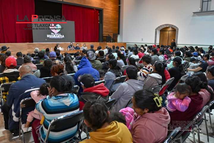 Durante la ceremonia, realizada este jueves en la Ex Cancha 13, el Alcalde dio la bienvenida al titular del Registro Civil y destacó la estrecha coordinación con el Gobierno del Estado para que más huamantlecos obtengan su acta de nacimiento.