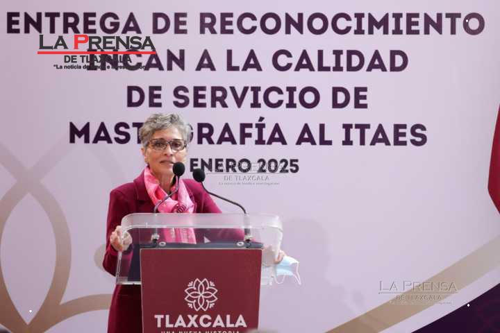 Al recibir el reconocimiento del Instituto Nacional de Cancerología (INCan) a la calidad del servicio de mastografía del Instituto Tlaxcalteca de Asistencia Especializada a la Salud (Itaes), la gobernadora Lorena Cuéllar Cisneros reconoció al personal de esta institución, que participó en una evaluación exhaustiva que analiza documentos, equipos y mantenimiento, entre otros aspectos.