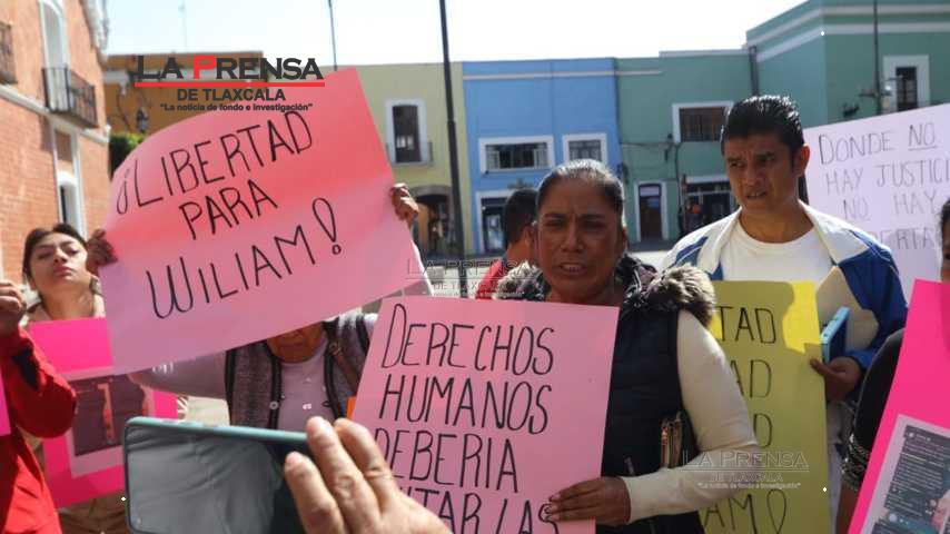 Familiares de William N. se manifestaron frente al Palacio de Gobierno de Tlaxcala para exigir justicia . Que ha estado en prisión durante 4 años y 2 meses, y recientemente se le dictó una sentencia de 33 años y 4 meses por el delito de violación.