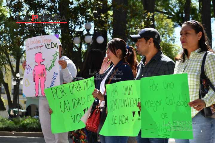 Tlaxcala, Tlax., 15 de enero. Este miércoles, pacientes y familiares de personas con insuficiencia renal se manifestaron al exterior de Palacio de Gobierno en la capital tlaxcalteca, pidiendo a autoridades estatales y del área de Salud la reapertura del programa de trasplante cadavérico en el Hospital Regional de Tzompantepec, el cual fue suspendido desde hace dos años y dejó en espera a, por lo menos, diez personas.