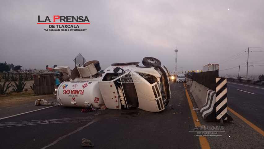 Esta mañana, una pipa de gas, volcó después de “volarse” un tope sobre la carretera federal México-Veracruz, a la altura de San Felipe Sultepec con dirección a Calpulalpan.