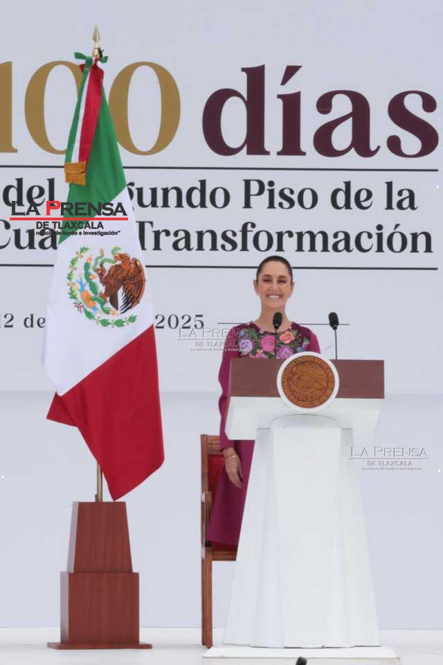 La gobernadora Lorena Cuéllar Cisneros acompañó a la presidenta de México Claudia Sheinbaum Pardo en su mensaje de 100 días de trabajo al frente de México.