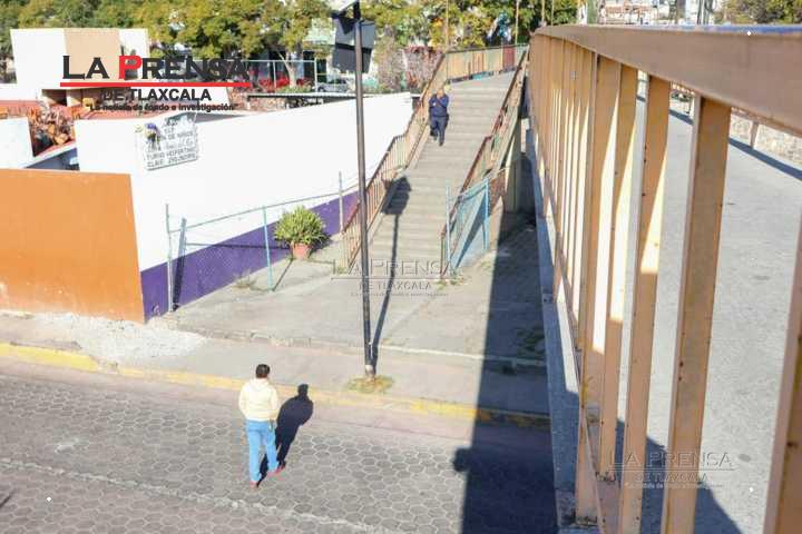 en la calle Miguel N.Lira. Situación que se replica en diferentes puentes peatonales.